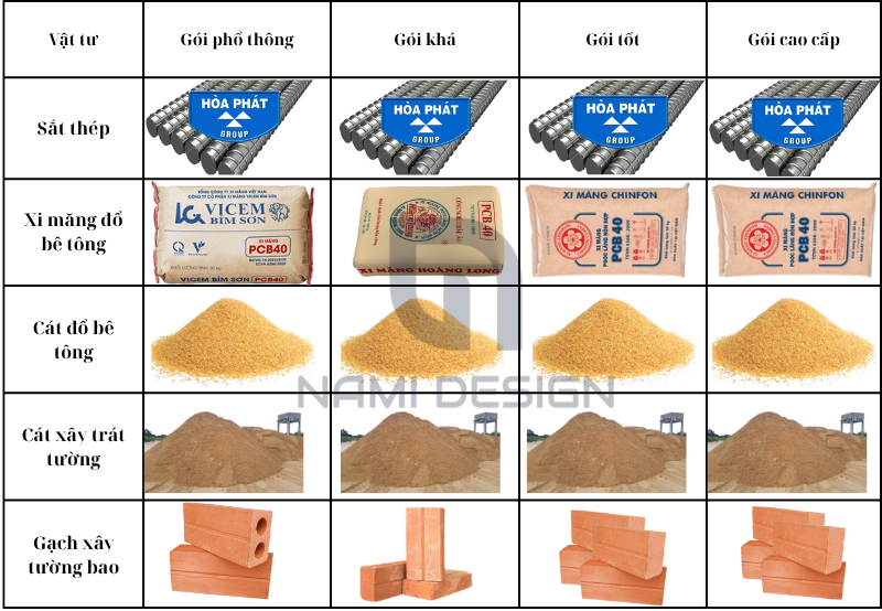 Có. Chủ đầu tư hoàn toàn được quyền chọn vật liệu theo gói tiêu chuẩn, trung cấp hoặc cao cấp mà nhà thầu đề xuất.