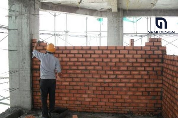 Xây từng hàng gạch một cách cẩn thận, không xây vượt quá 1,2m/ngày để tránh tình trạng xô lệch, sụt lún do tải trọng dồn nhanh.
